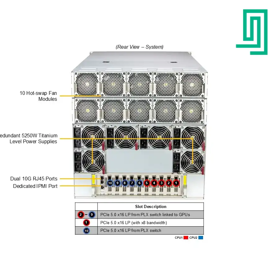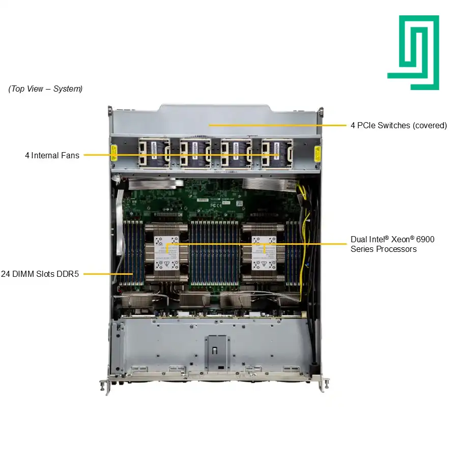 این سرور ۲ یونیت (2U) یک شاهکار مهندسی است که برای میزبانی از نسل جدید شتابدهندههای هوش مصنوعی، بهویژه NVIDIA B200، متولد شده است.